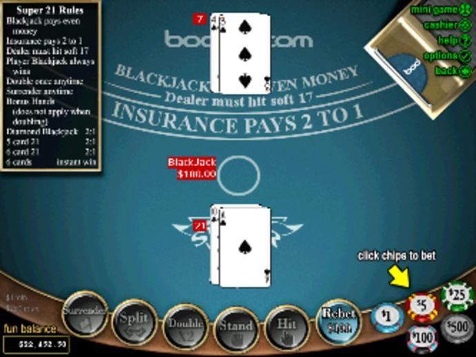 La idea detrás de este juego es utilizar una estrategia de blackjack que te lleve a 21 puntos. Esta variación del juego te da más espacio a medida que llegas a alcanzar el límite de 21 puntos con hasta seis cartas. Puedes ganar en este juego incluso si no consigues los 21 puntos con tu mano de seis cartas. Puedes jugar Super blackjack hoy inscribiéndote en los casinos en línea que llevan software RTG. La promesa de súper bonos debería ser suficiente para mantenerte pegado a este juego.